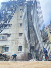 2025年 9月 五樓底板板模組立水電放樣、柱牆鋼筋綁紮水電配管、施工電梯安裝、水電室內拉線及修繕